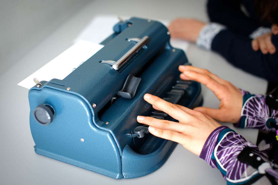 Rahma og Ahmad sitter ved hver sin pult på et arbeidsrom på Gulskogen skole, vegg i vegg med klasserommet til resten av elevene i mottaksklassen. Foran seg har de hver sin punktmaskin. Det høres ut som lyden av en stor, gammel skrivemaskin hver gang de trykker på en tast. Når tangenten treffer papiret, formes et symbol i punktskrift på det hvite papiret. Denne dagen øver Rahma på ord. Ahmad øver på tall.